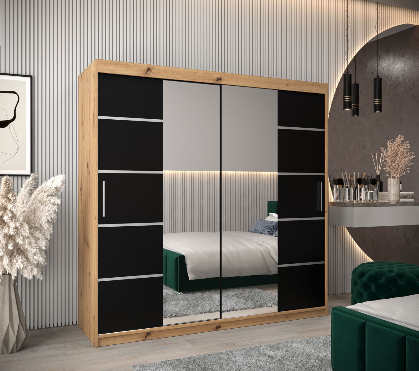 - Šatní skříň 200 cm Verika 4 200 (dub artisan + černá)