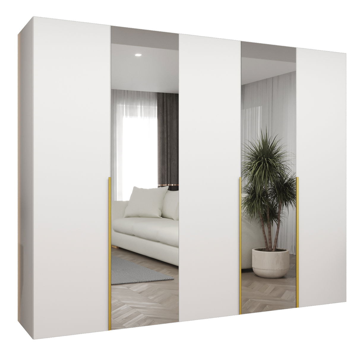 Šatní skříň 250 cm Alice 2 (bílá + zlatá)