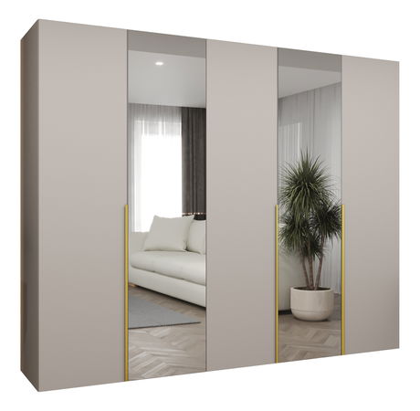 Šatní skříň 250 cm Alice 2 (kašmír + zlatá)