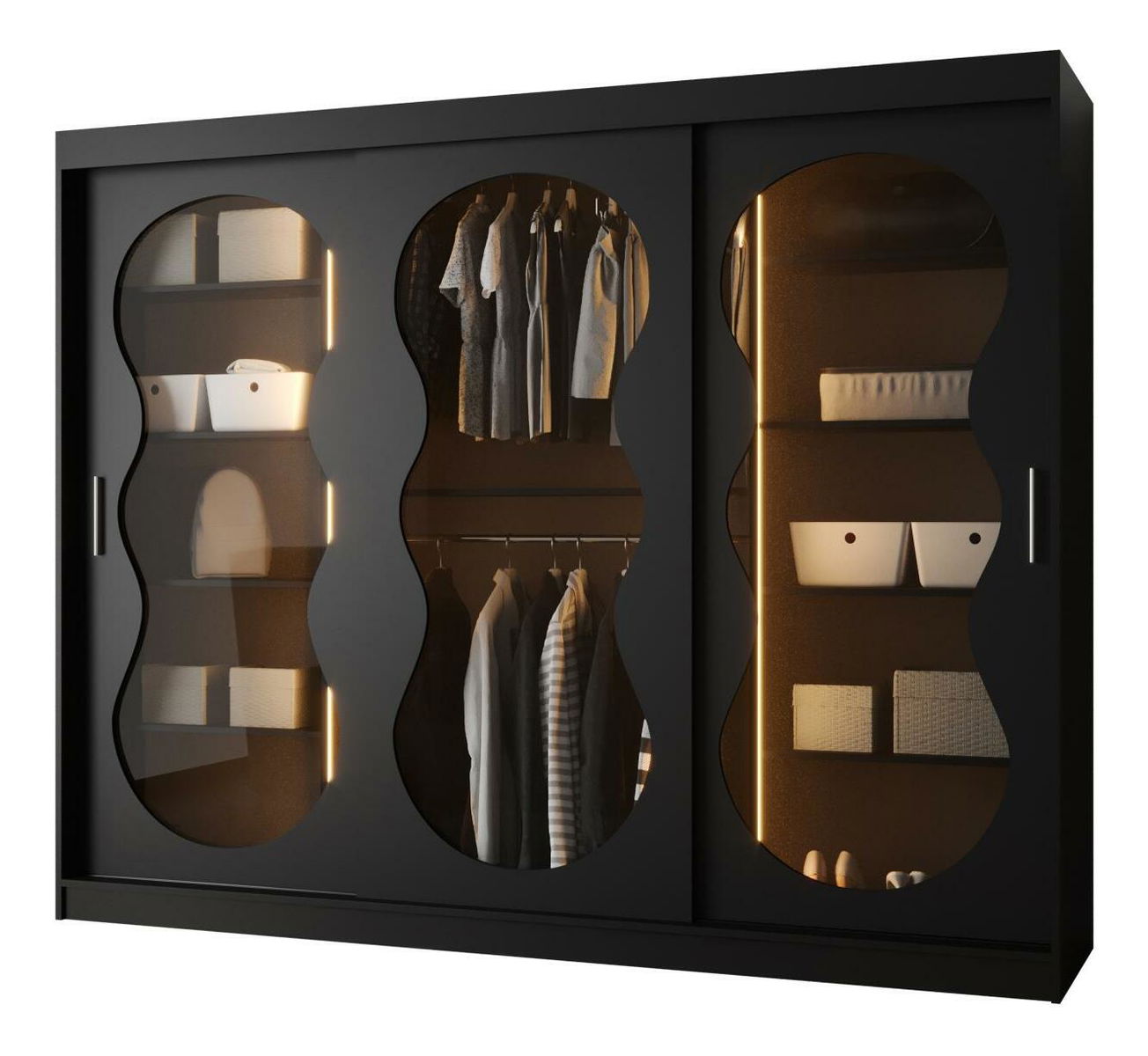 Šatní skříň Boomer má moderní, ale zároveň nadčasový design, který se vyznačuje jedinečně tvarovaným zrcadlem. Šatník je k dispozici ve dvou barvách a čtyřech různých velikostech. Skříň disponuje také LED osvětlením.