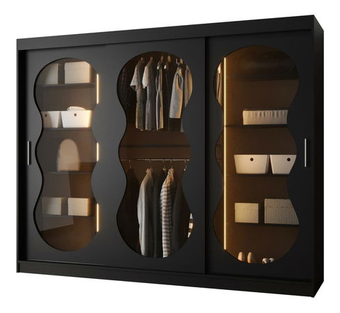 Šatní skříň 250 cm Boomer 3 (černá) (s osvětlením)