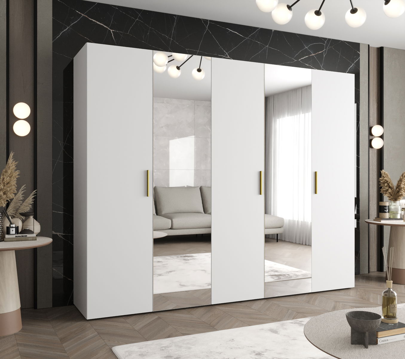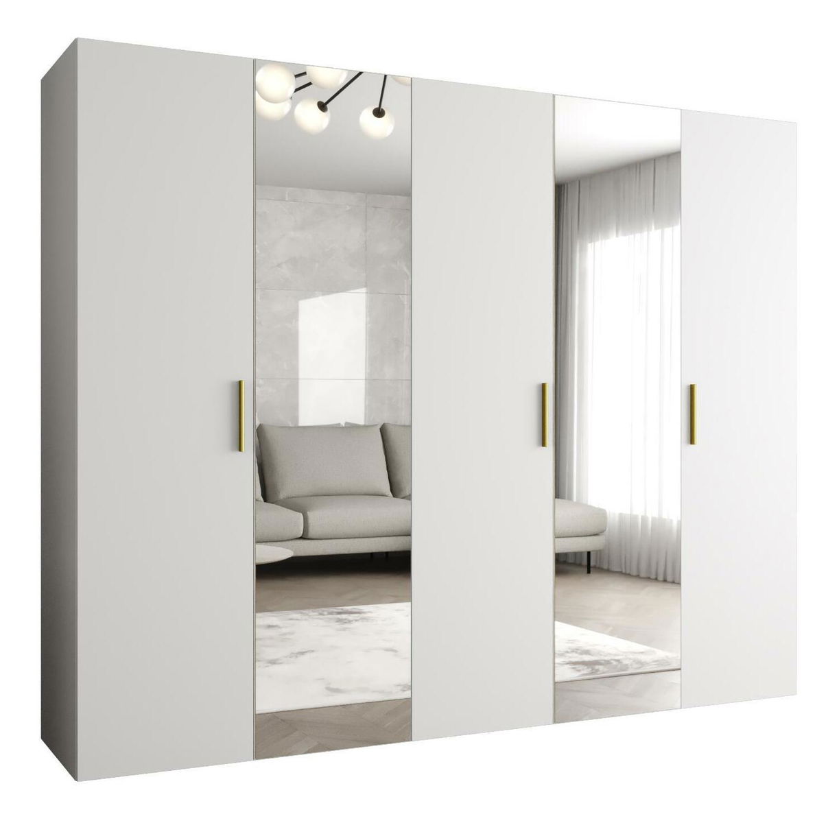 Šatní skříň 250 cm Borry 2 (bílá + zlatá)