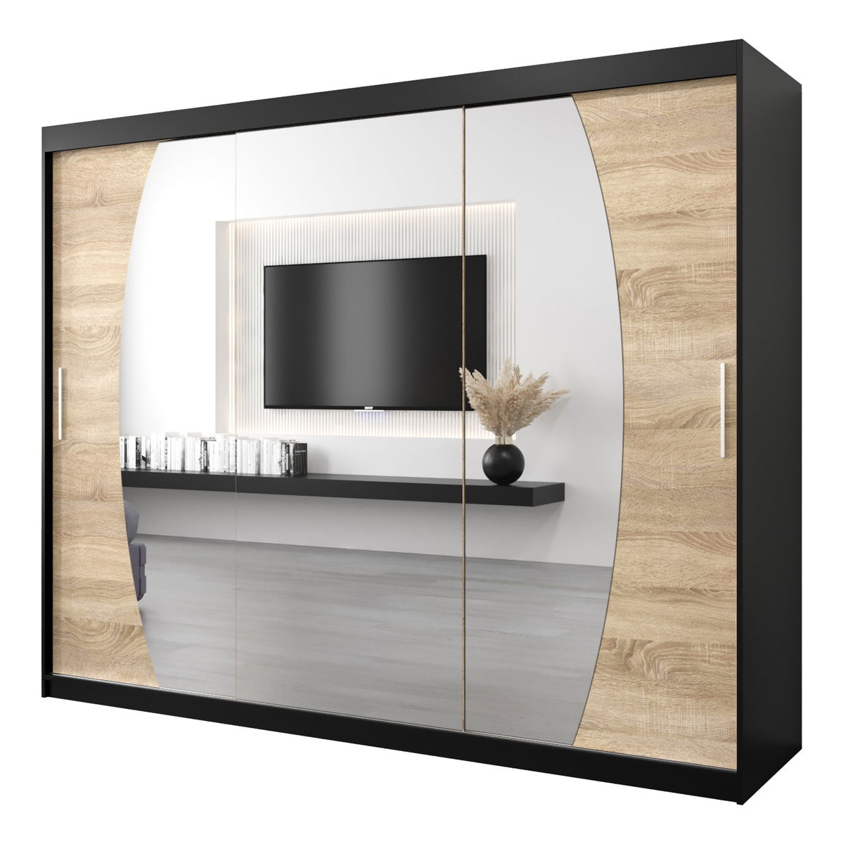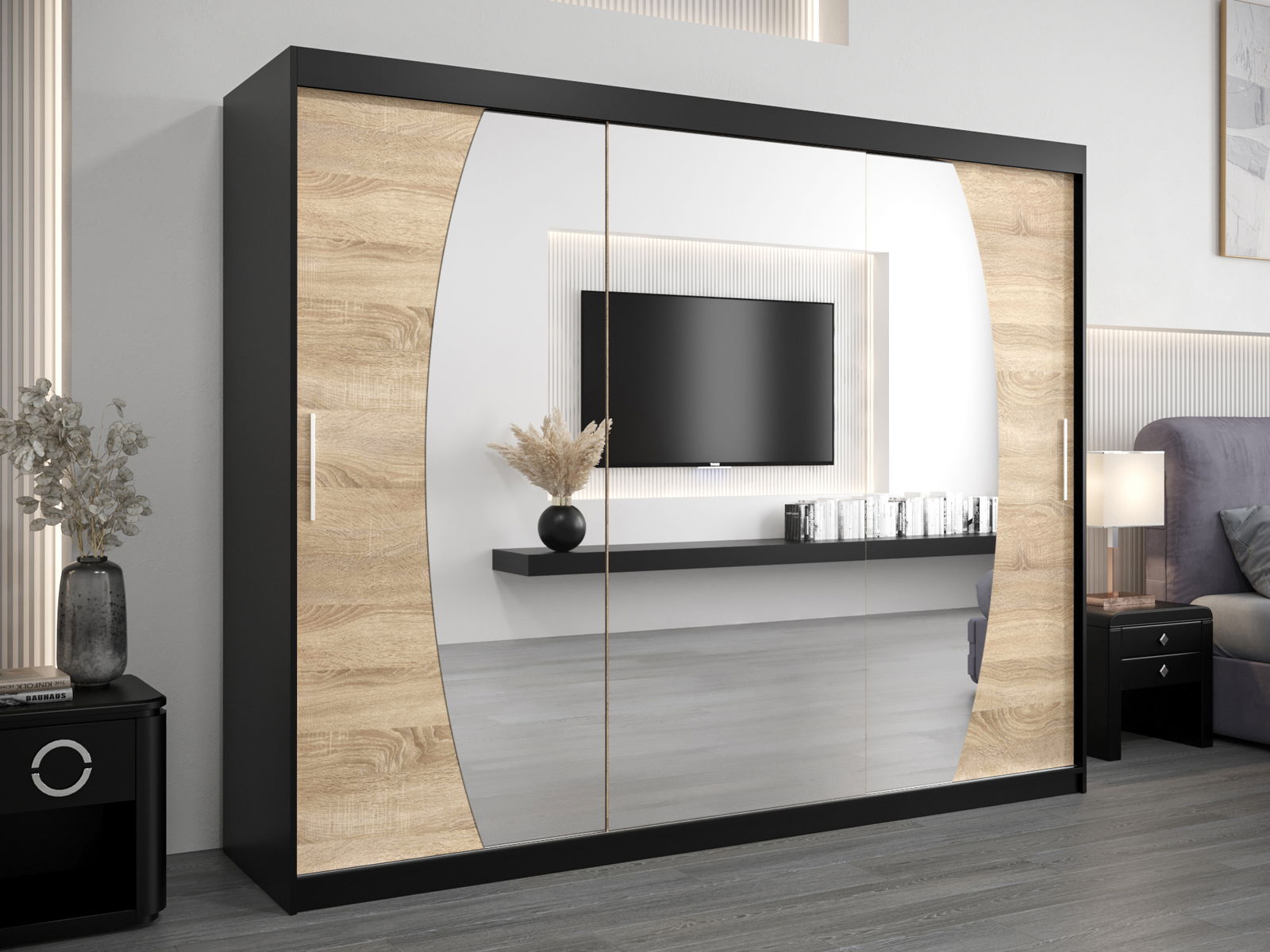 Šatní skříň 250 cm Eclipse (černá matná + dub sonoma)