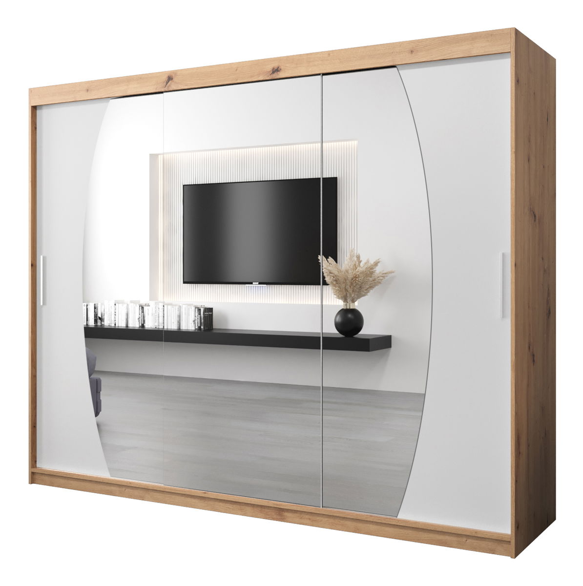 Šatní skříň 250 cm Eclipse (dub artisan + bílá matná)