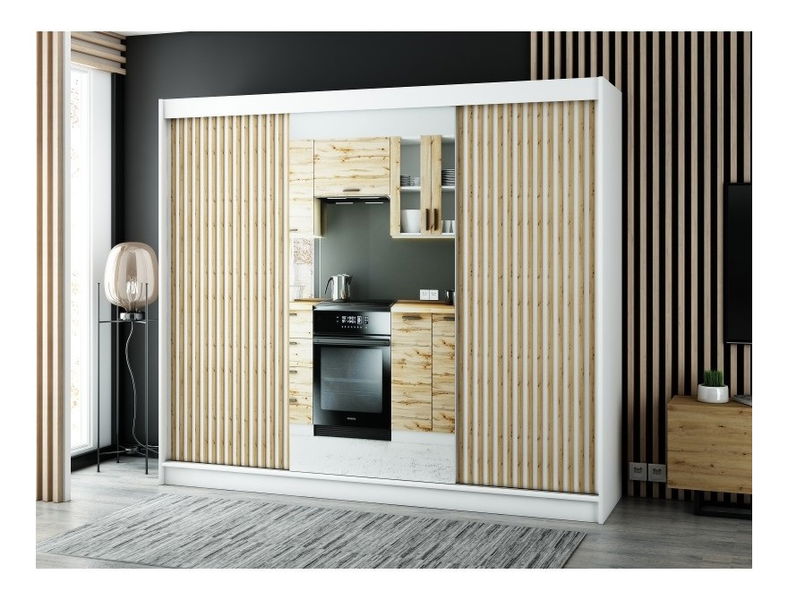 - Šatní skříň 250 cm Ladonna 2 (bilá matná) (se zrcadlem)