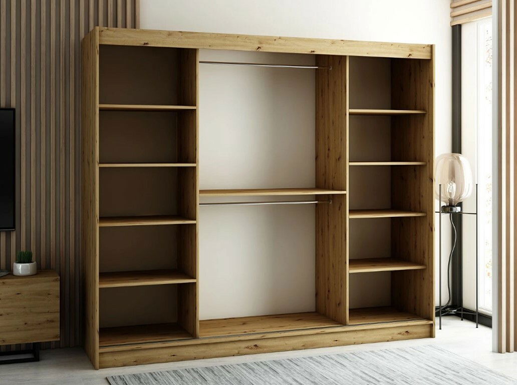 - Šatní skříň 250 cm Ladonna (dub artisan + černá matná)