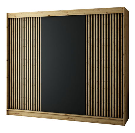 Šatní skříň 250 cm Ladonna (dub artisan + černá matná)