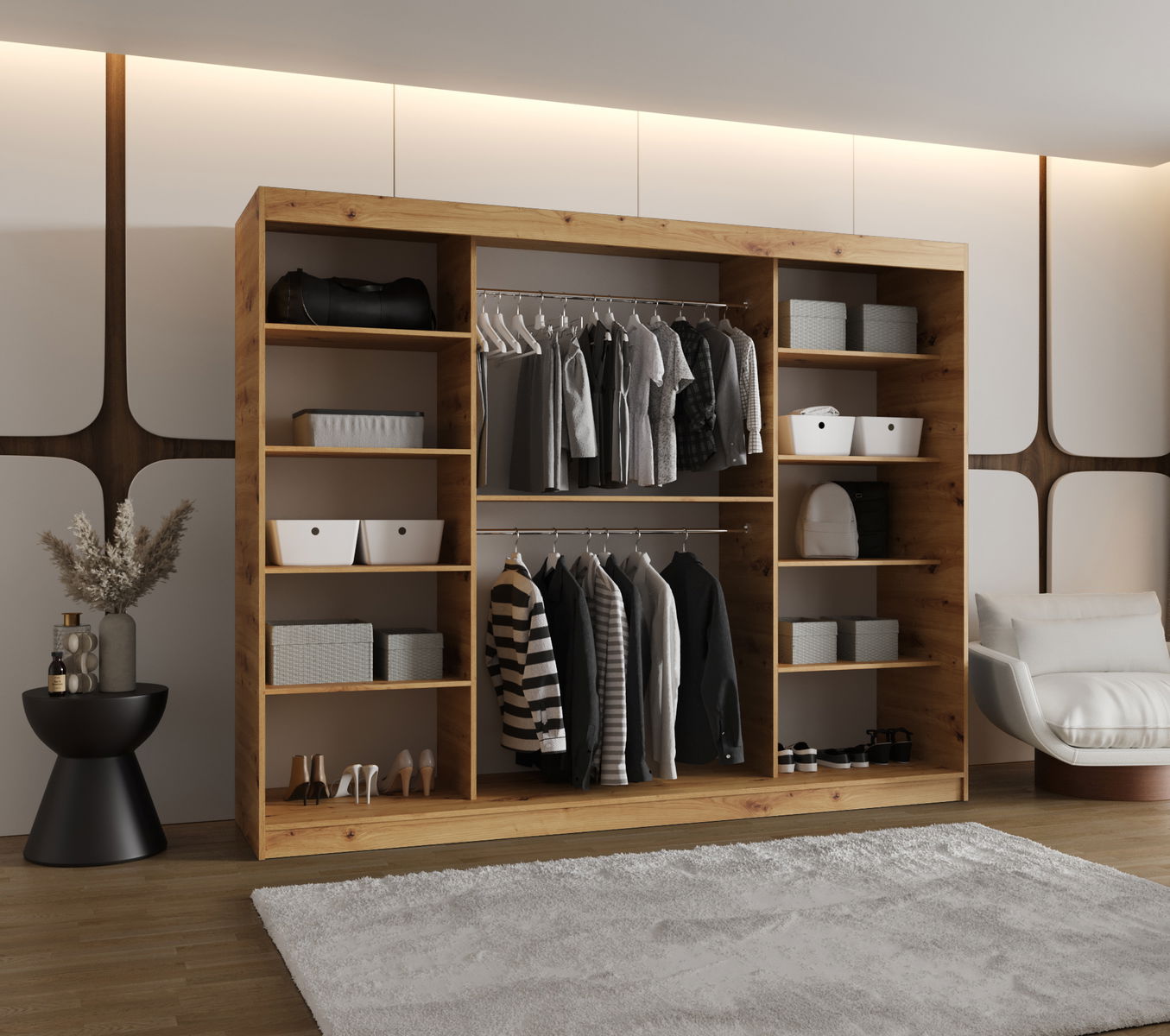 ZobrazitŠatní skříň s posuvnými dveřmi a zrcadlem Lulu je vyrobena v moderním, ale zároveň nadčasovém stylu. K dispozici ve čtyřech barvách a šesti různých velikostech.