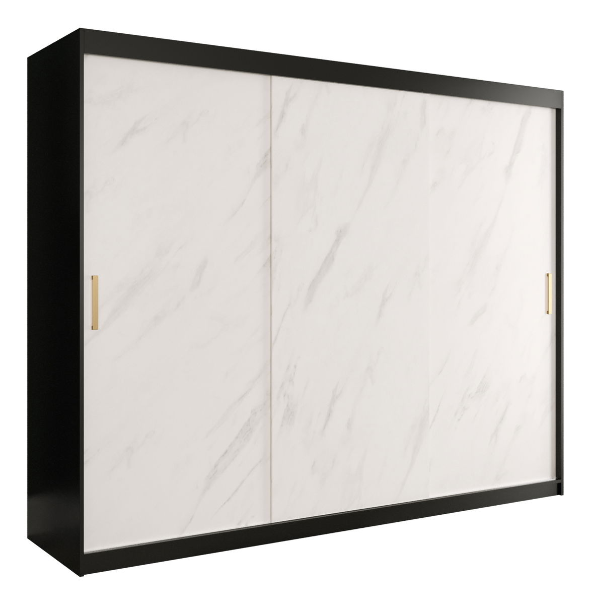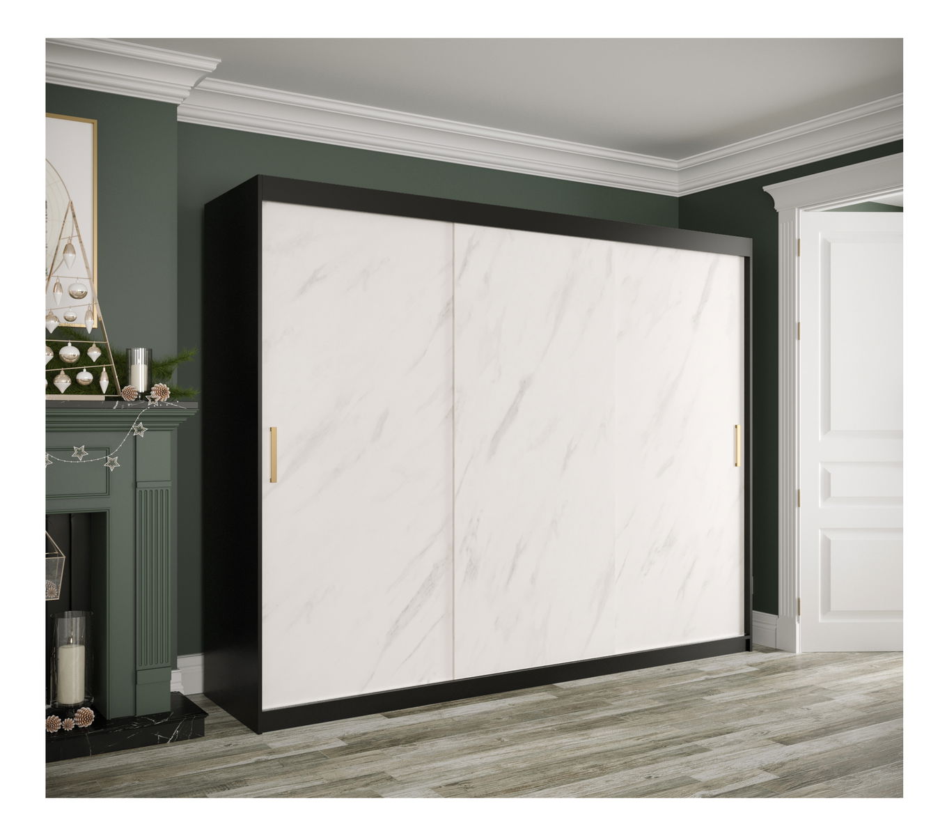 Šatní skříň 250 cm Marbelo T (matná černá + bílý mramor)