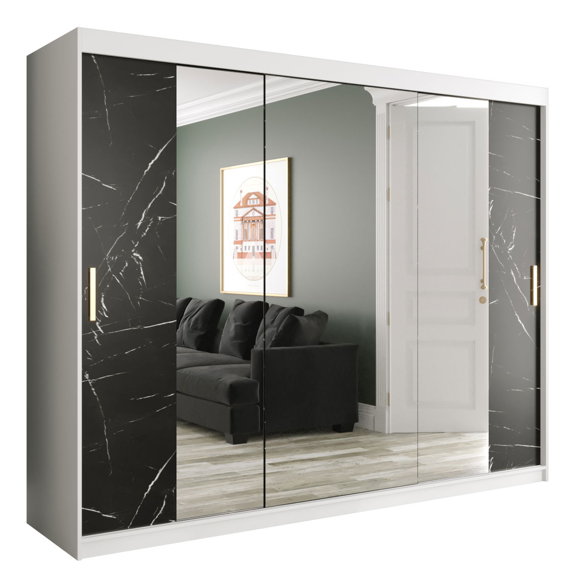 Šatní skříň 250 cm Marbelo T2 (matná bílá + černý mramor)