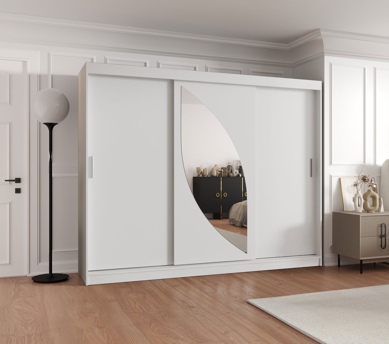 ZobrazitŠatní skříň s posuvnými dveřmi a zrcadlem Milain je vyrobena v moderním, ale zároveň nadčasovém stylu. K dispozici v pěti barvách a šesti různých velikostech.