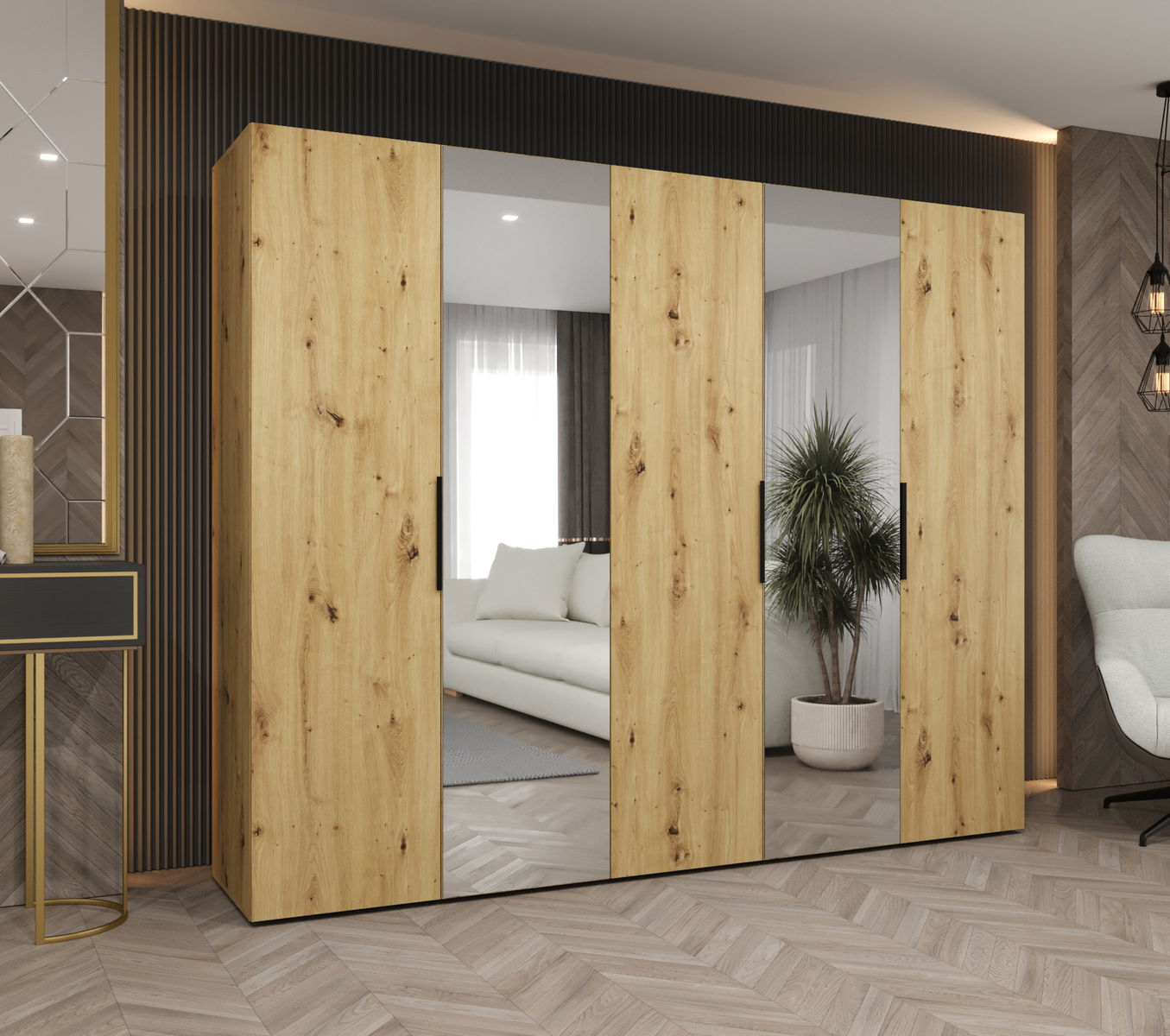 Šatní skříň 250 cm Mirabella 2 (dub artisan + černá)