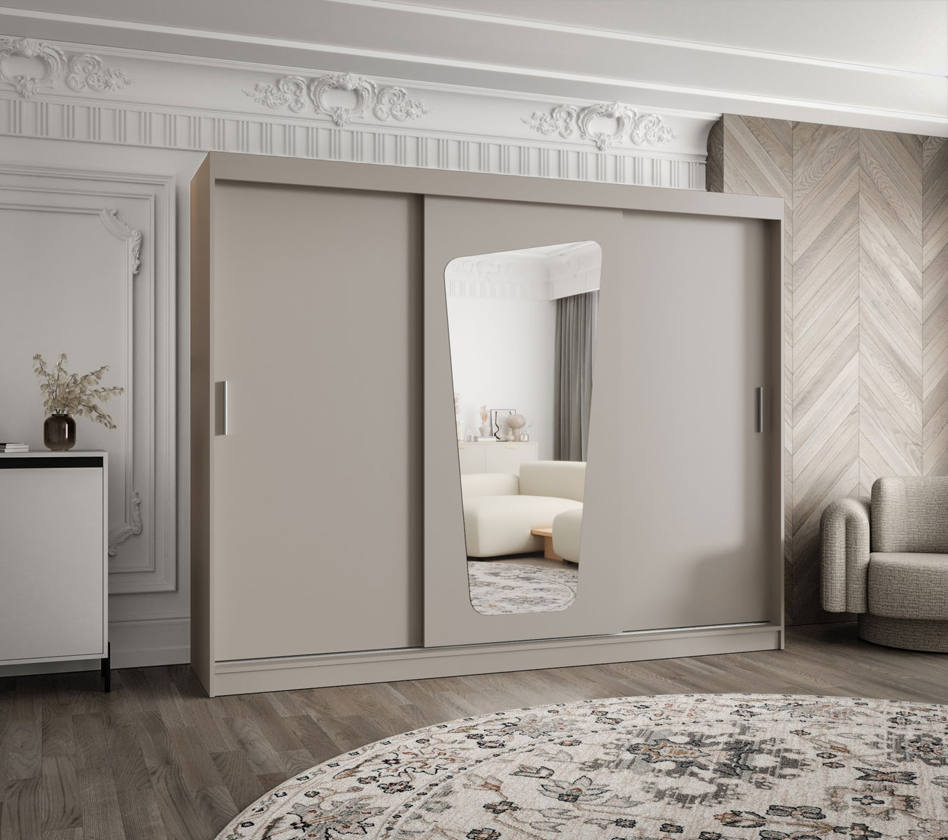ZobrazitŠatní skříň s posuvnými dveřmi a zrcadlem Mokka je vyrobena v moderním, ale zároveň nadčasovém stylu. K dispozici ve čtyřech barvách a šesti různých velikostech.