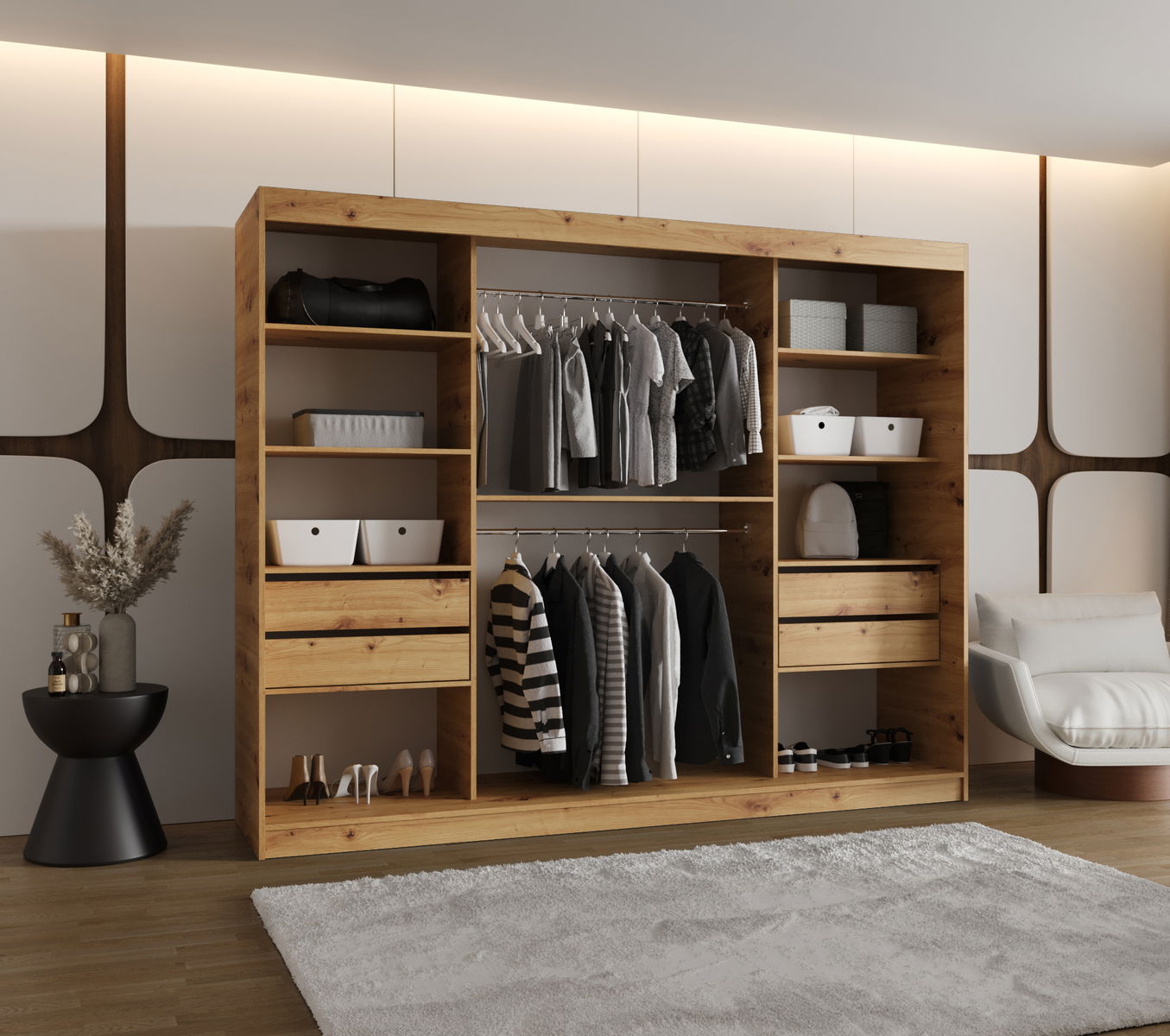 ZobrazitŠatní skříň s posuvnými dveřmi a zrcadlem Spock je vyrobena v moderním, ale zároveň nadčasovém stylu. K dispozici ve čtyřech barvách a šesti různých velikostech.