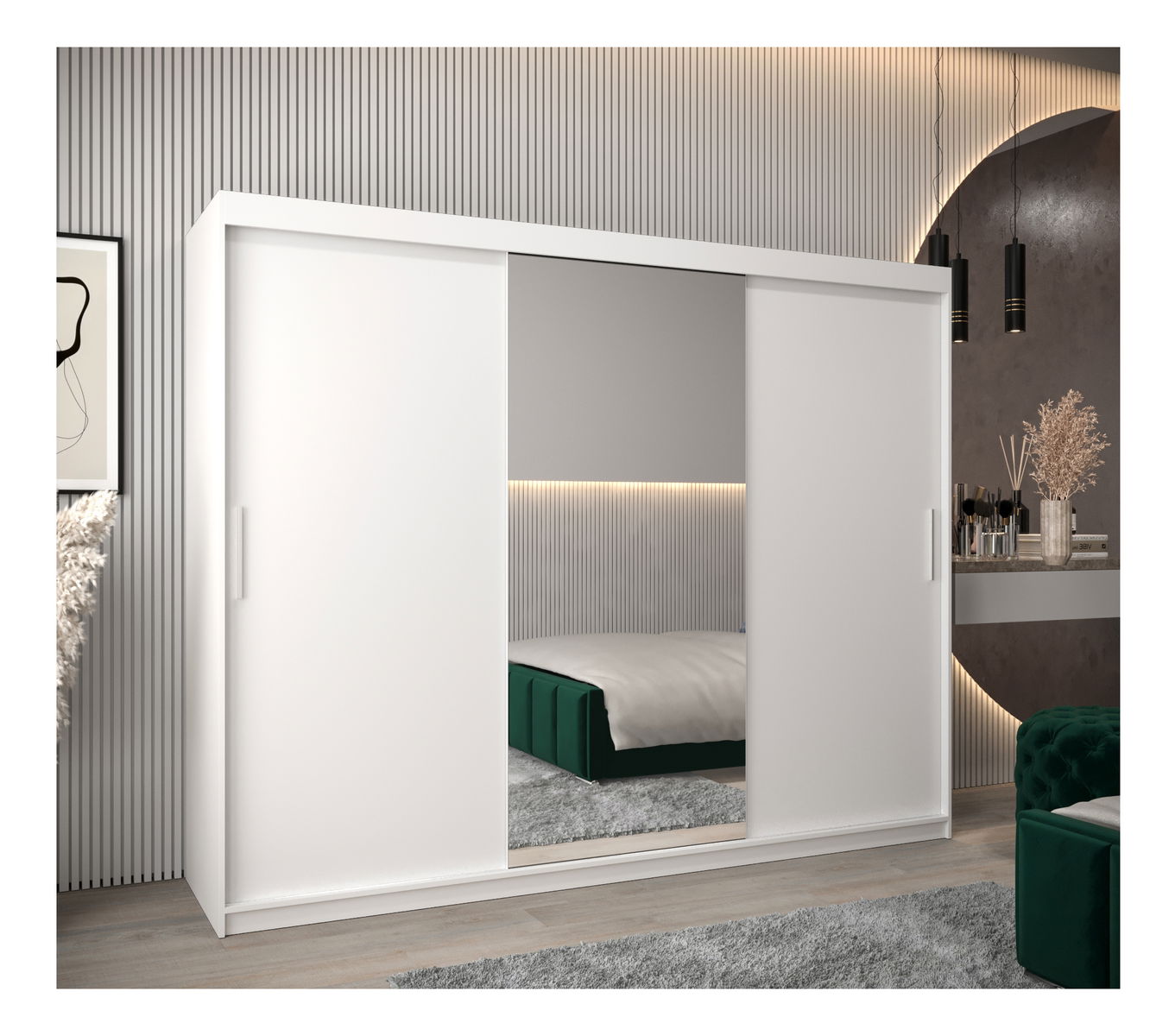 ZobrazitPředstavujeme šatní skříň Toki s posuvnými dveřmi - elegantní a moderní úložné řešení pro moderní domácnost. Šatní skříň Toki je vybavena inovativním posuvným systémem LAGUNA, který zajišťuje bezproblémový přístup do skříně a má stříbrné plastové úchytky pro minimalistický nádech. Díky zrcadlu, které zdobí posuvné dveře, nabízí pohodlí i styl. Tato šatní skříň je navržena tak, aby pozvedla váš prostor, a kombinuje praktičnost s minimalistickou estetikou. Snadno si v ní uspořádáte potřebné věci a dodáte svému pokoji nádech moderní elegance. Šatní skříň Toki s posuvnými dveřmi je ztělesněním formy a funkčnosti.