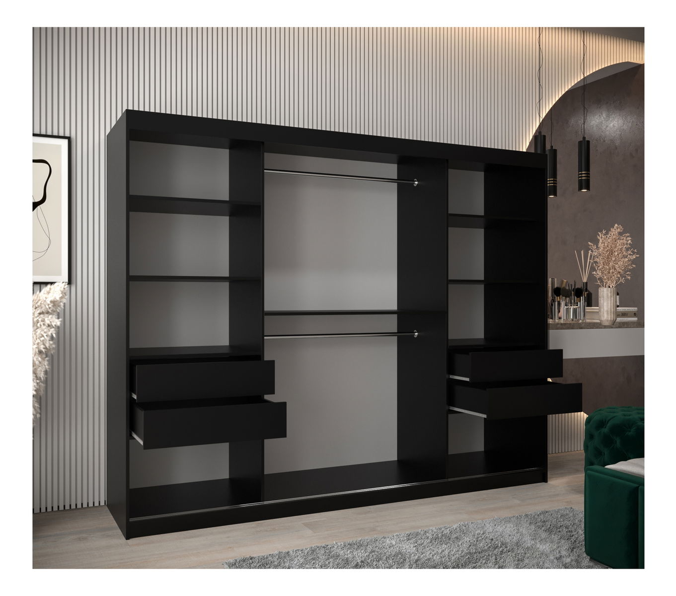 Šatní skříň 250 cm Toki 1 (Černá matná + Černá matná)