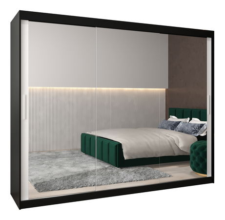 Šatní skříň 250 cm Toki 3 (Černá matná + Bílá matná)