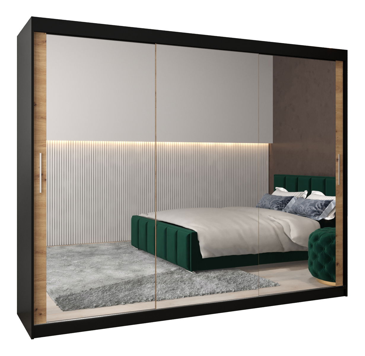 Šatní skříň 250 cm Toki 3 (Černá matná + Dub artisan)