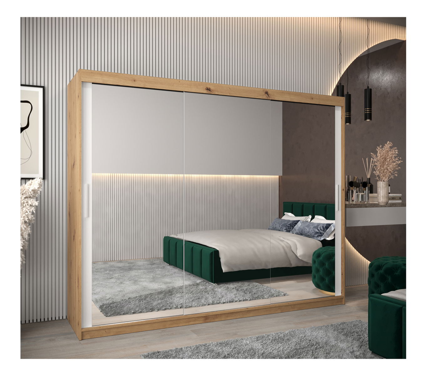 Šatní skříň 250 cm Toki 3 (Dub artisan + Bílá matná)