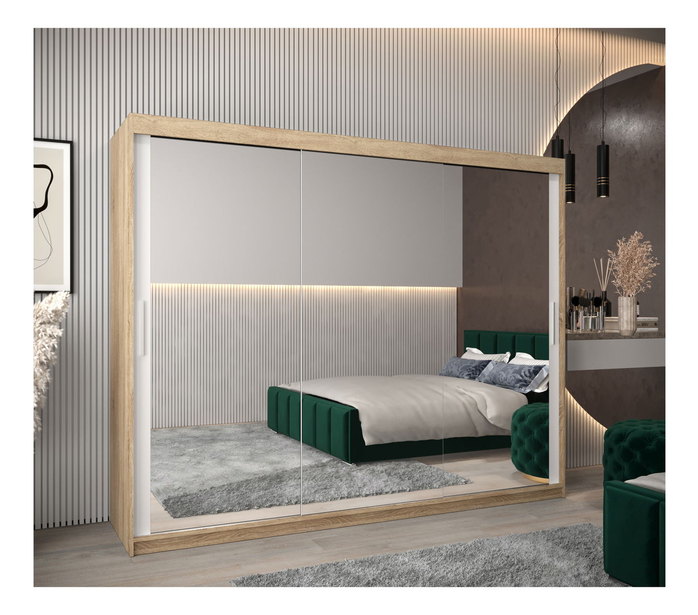 Šatní skříň 250 cm Toki 3 (Dub sonoma + Bílá matná)