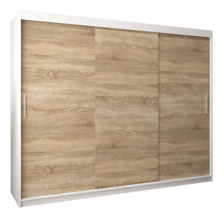 Šatní skříň 250 cm Toki (Bílá matná + Dub sonoma)