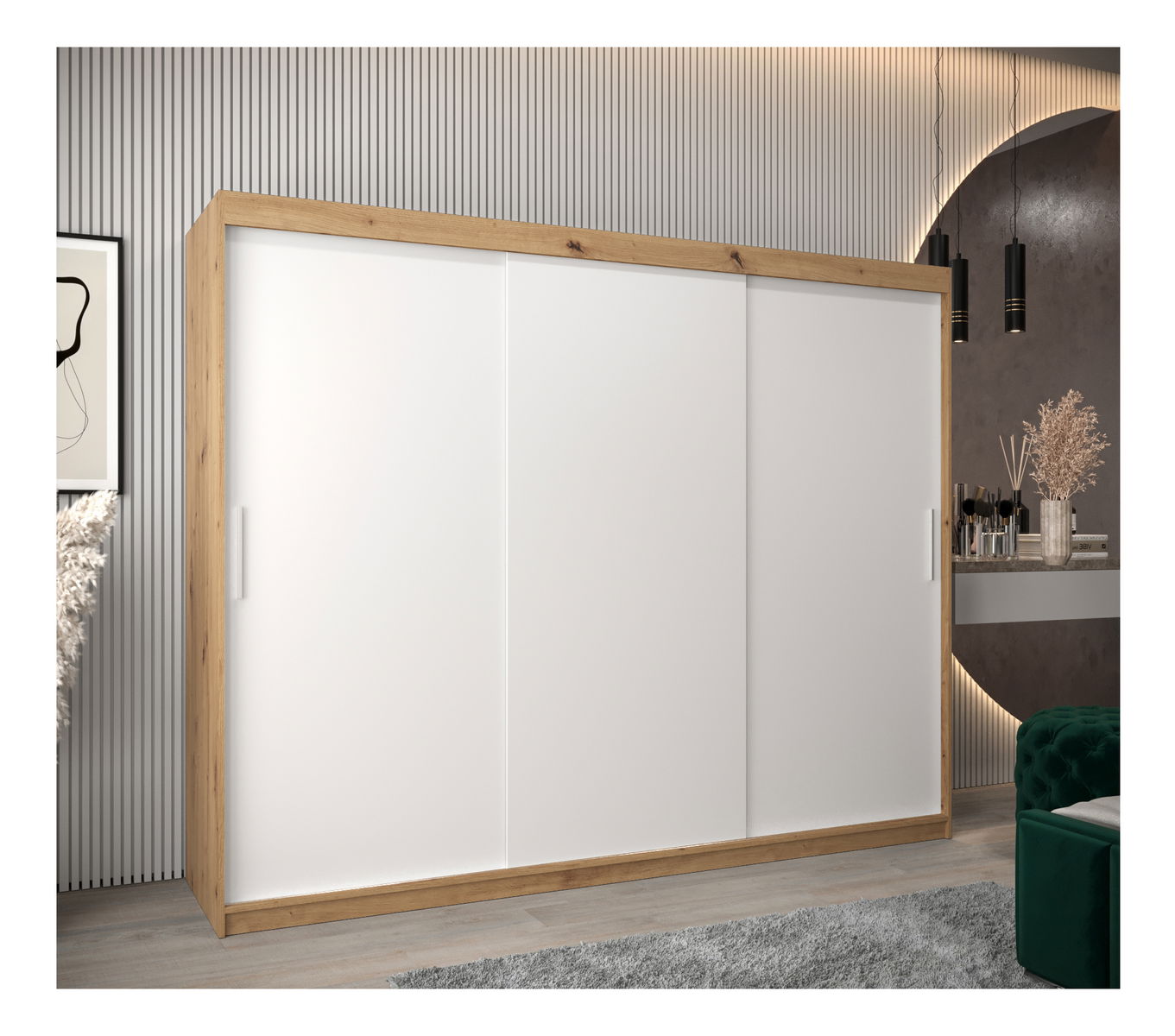 Šatní skříň 250 cm Toki (Dub artisan + Bílá matná)