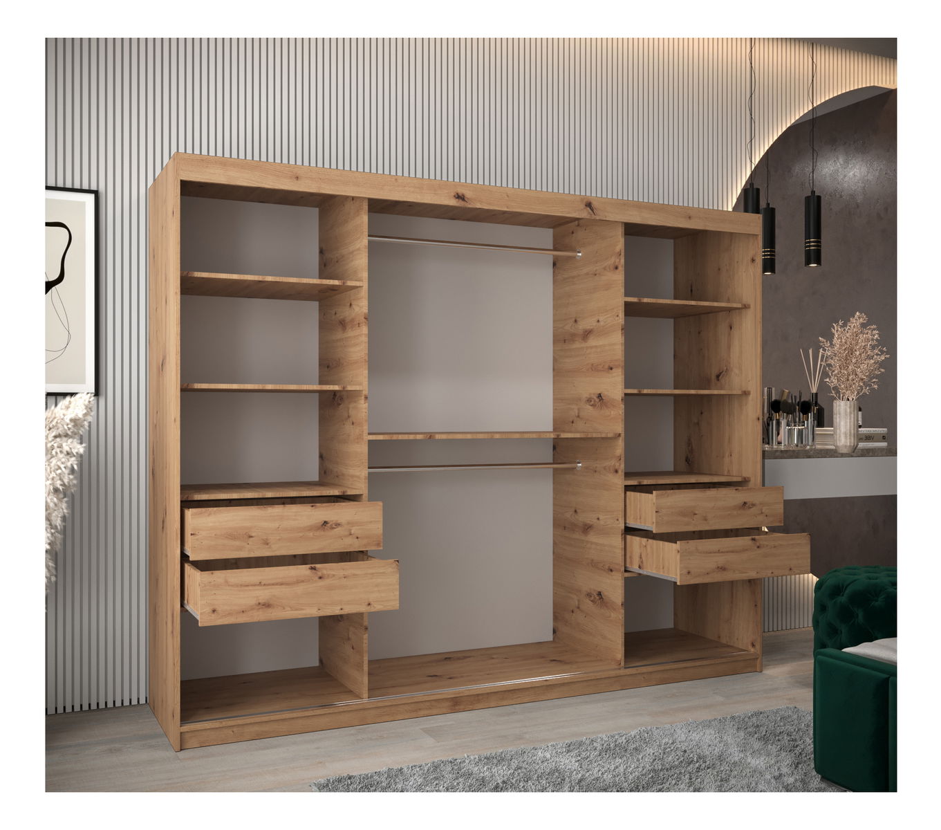 Šatní skříň 250 cm Toki (Dub artisan + Dub artisan) *výprodej