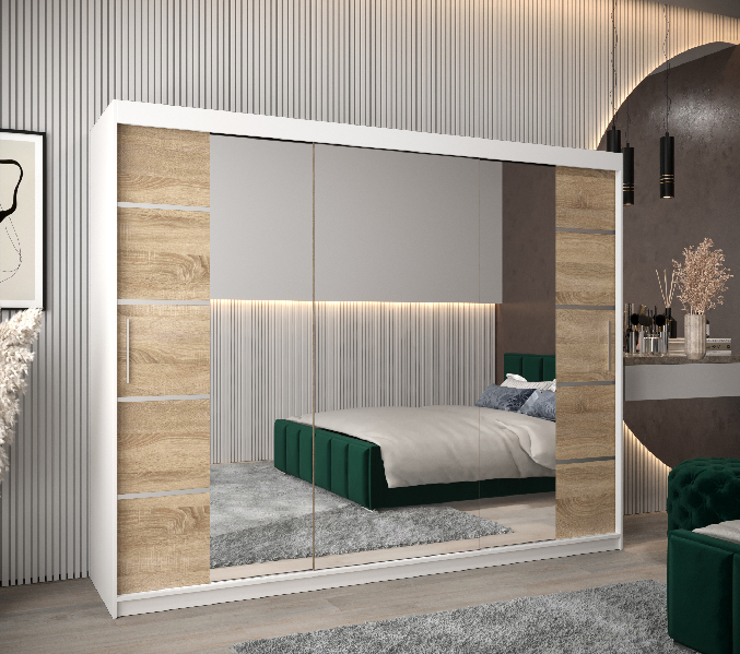 - Šatní skříň 250 cm Verika 4 250 (bílá + dub sonoma)