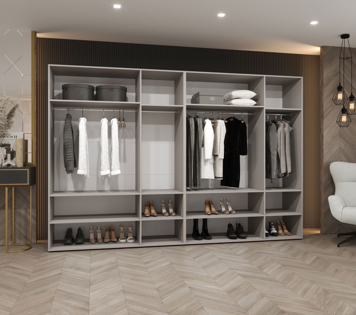 ZobrazitKolekce šatní skříní Alice se zrcadlovými dveřmi kombinuje eleganci a funkčnost a promění vaši ložnici. Díky pěti různým šířkám si můžete šatník snadno přizpůsobit svým potřebám a velikosti místnosti. Další výhodou je možnost dokoupení dalších polic, díky čemuž bude ještě funkčnější.