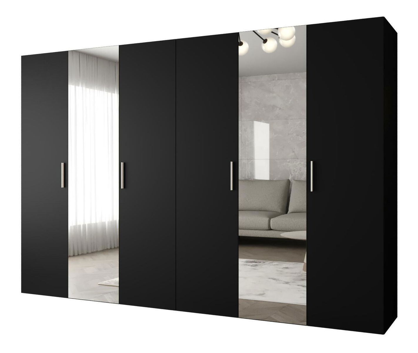 Šatní skříň 300 cm Borry 2 (černá + stříbrná)