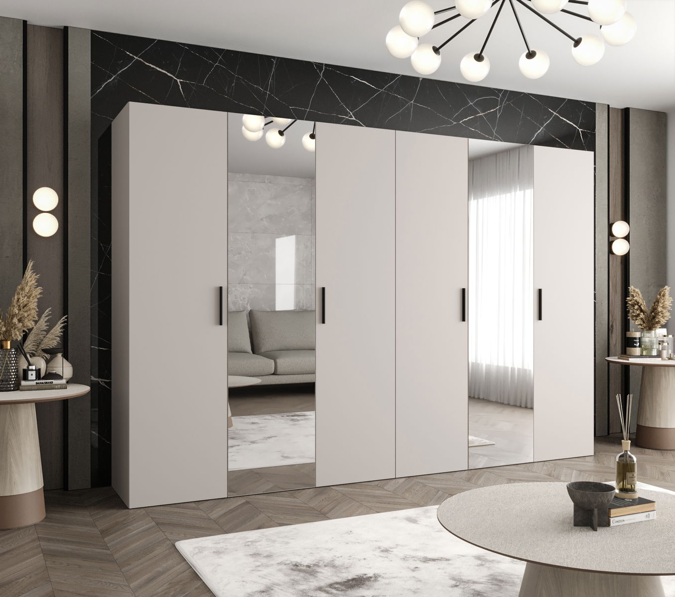 Šatní skříň 300 cm Borry 2 (kašmír + černá)