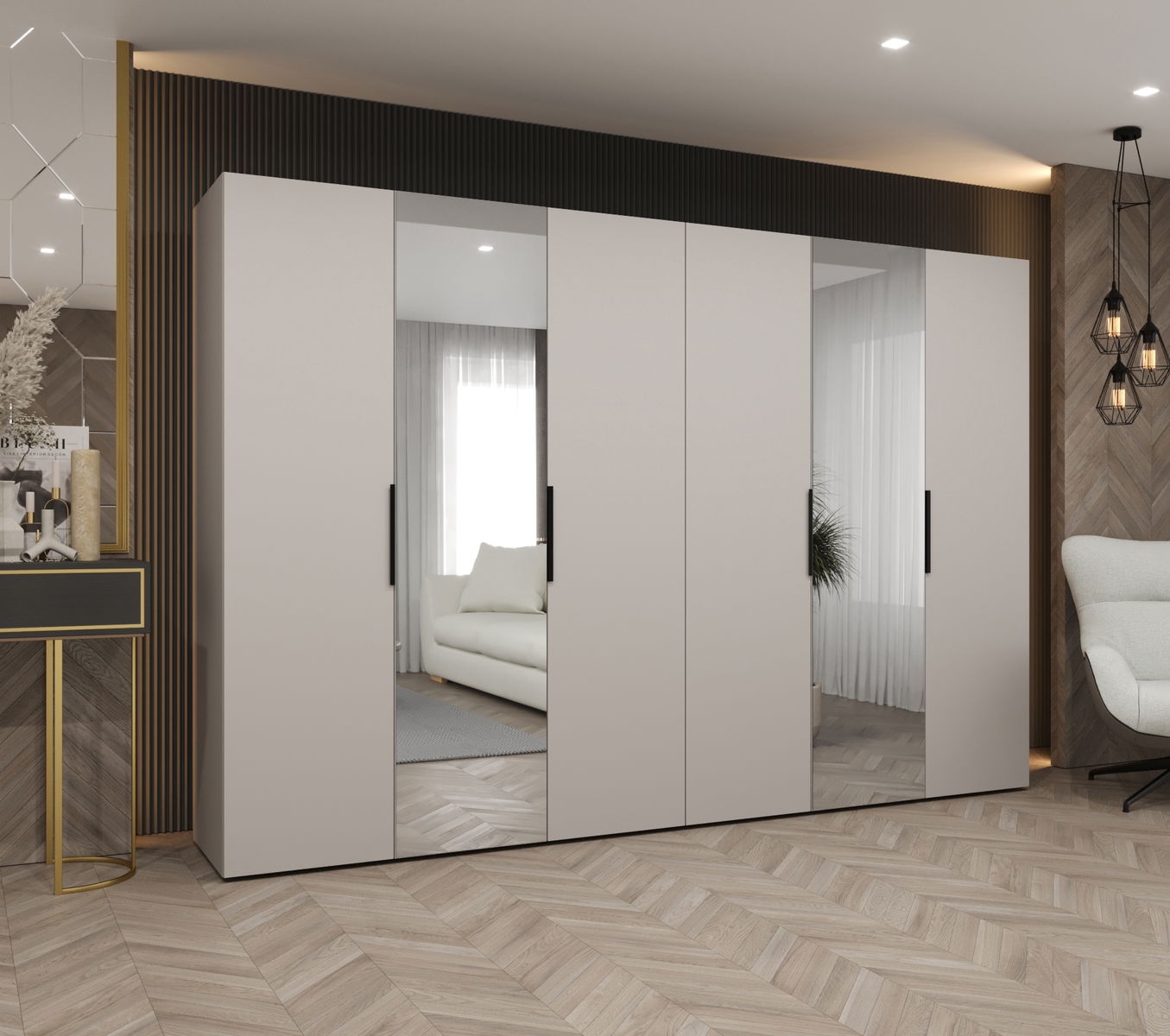Šatní skříň 300 cm Mirabella 2 (kašmír + černá)