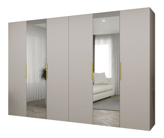 Šatní skříň 300 cm Mirabella 2 (kašmír + zlatá)