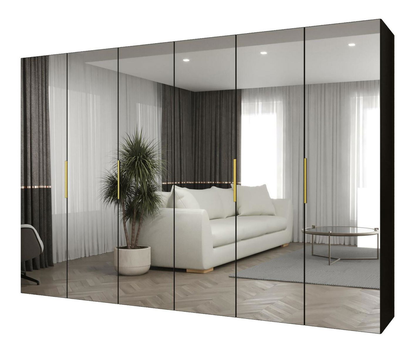 Šatní skříň 300 cm Mirabella 3 (černá + zlatá)