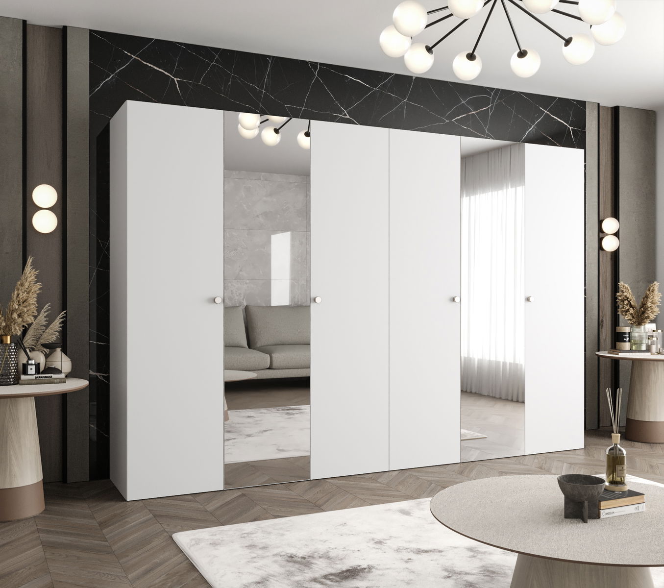 Šatní skříň 300 cm Parna 2 (bílá + stříbrná)
