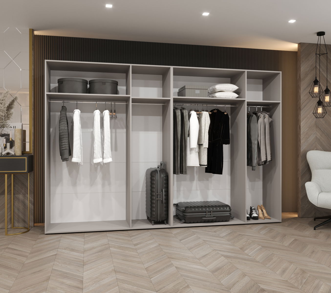 ZobrazitKolekce šatní skříní Parna se zrcadlem kombinuje eleganci a funkčnost a promění vaši ložnici. Díky pěti různým šířkám si můžete šatník snadno přizpůsobit svým potřebám a velikosti místnosti. Další výhodou je možnost dokoupení dalších polic, díky čemuž bude ještě funkčnější.