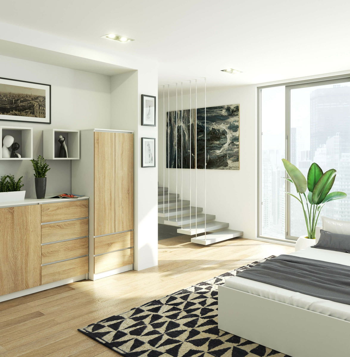Šatní skříň Slots (bílá + dub sonoma) *výprodej