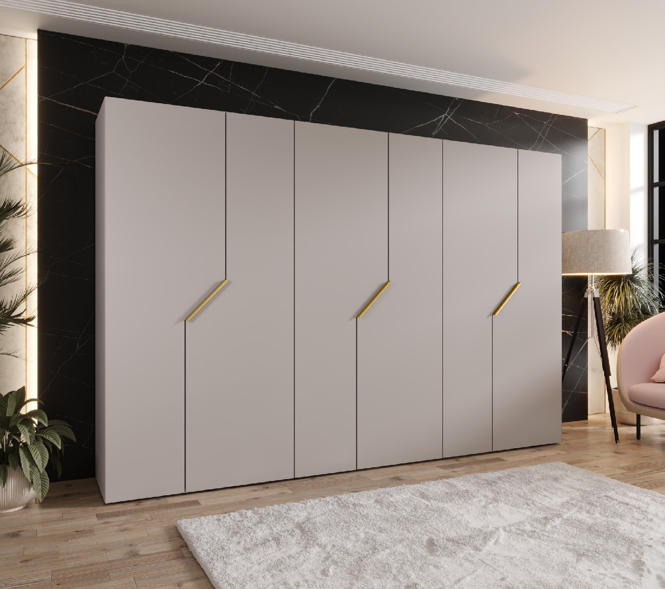 Šatní skříň Alaris 1 300 (kašmír + zlatá)