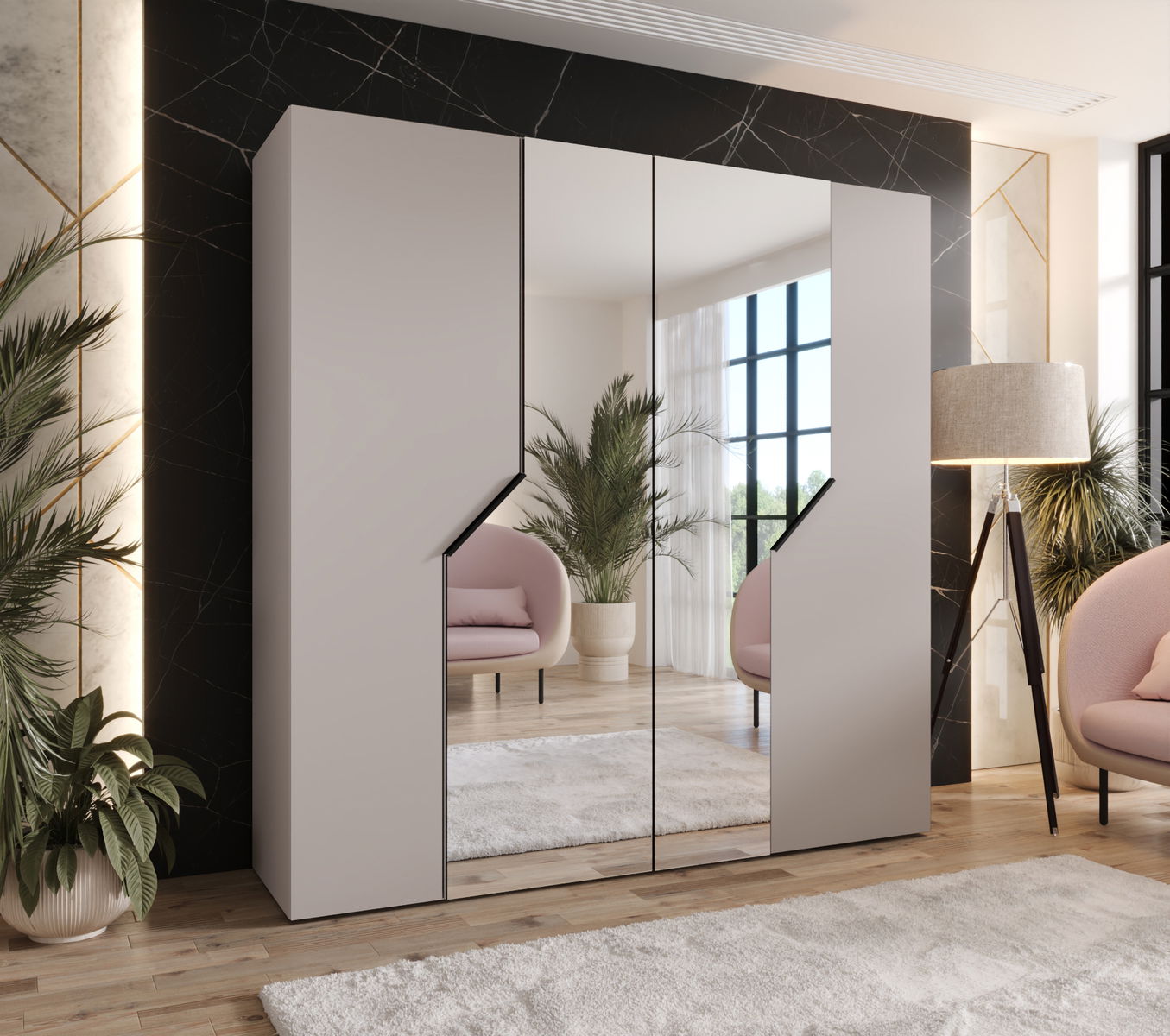 - Šatní skříň Alaris 2 200 (kašmír + černá) (se zrcadlem)