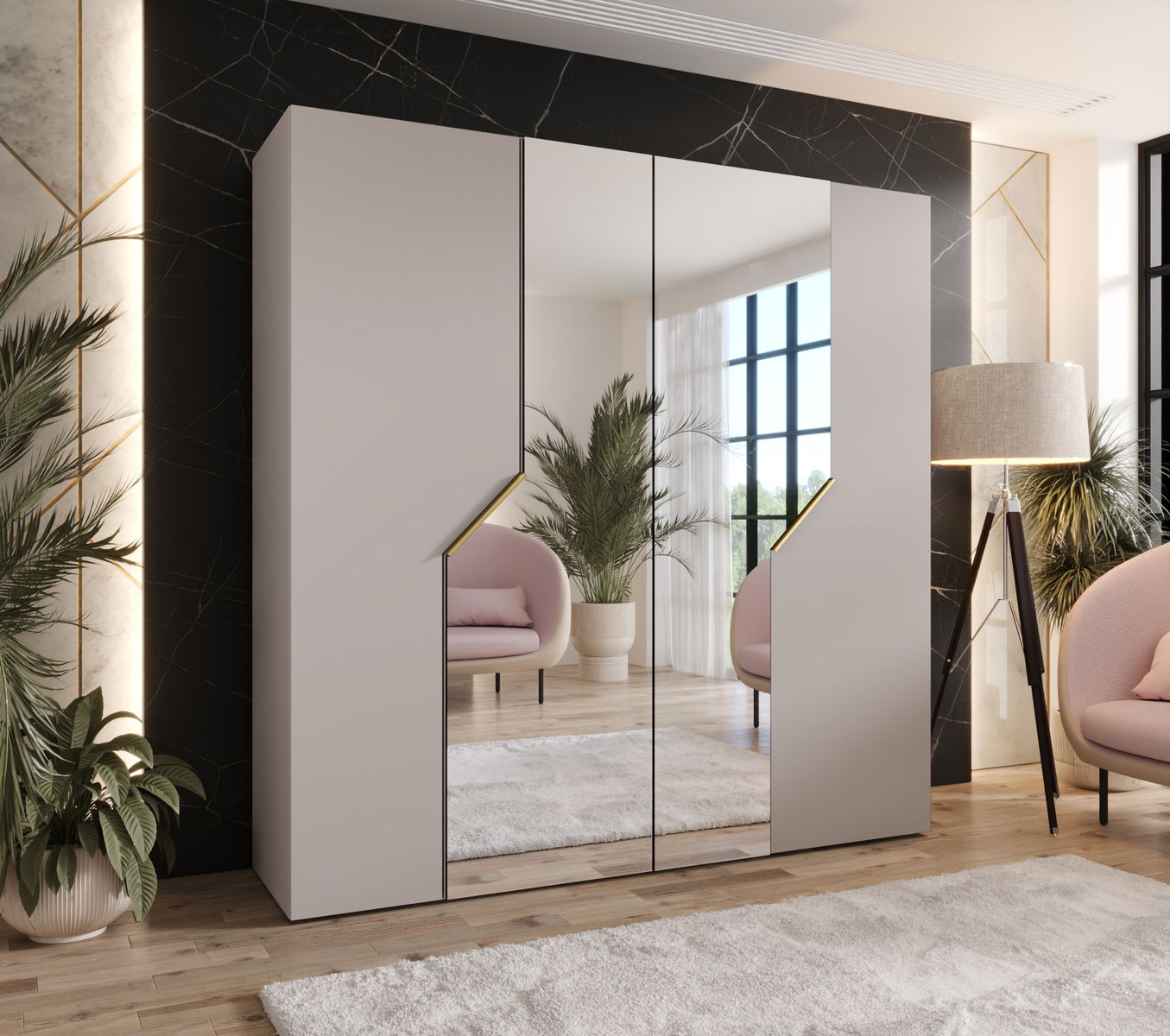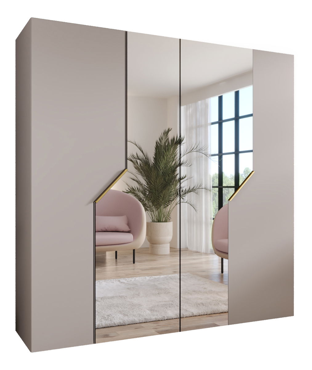 Šatní skříň Alaris 2 200 (kašmír + zlatá) (se zrcadlem)