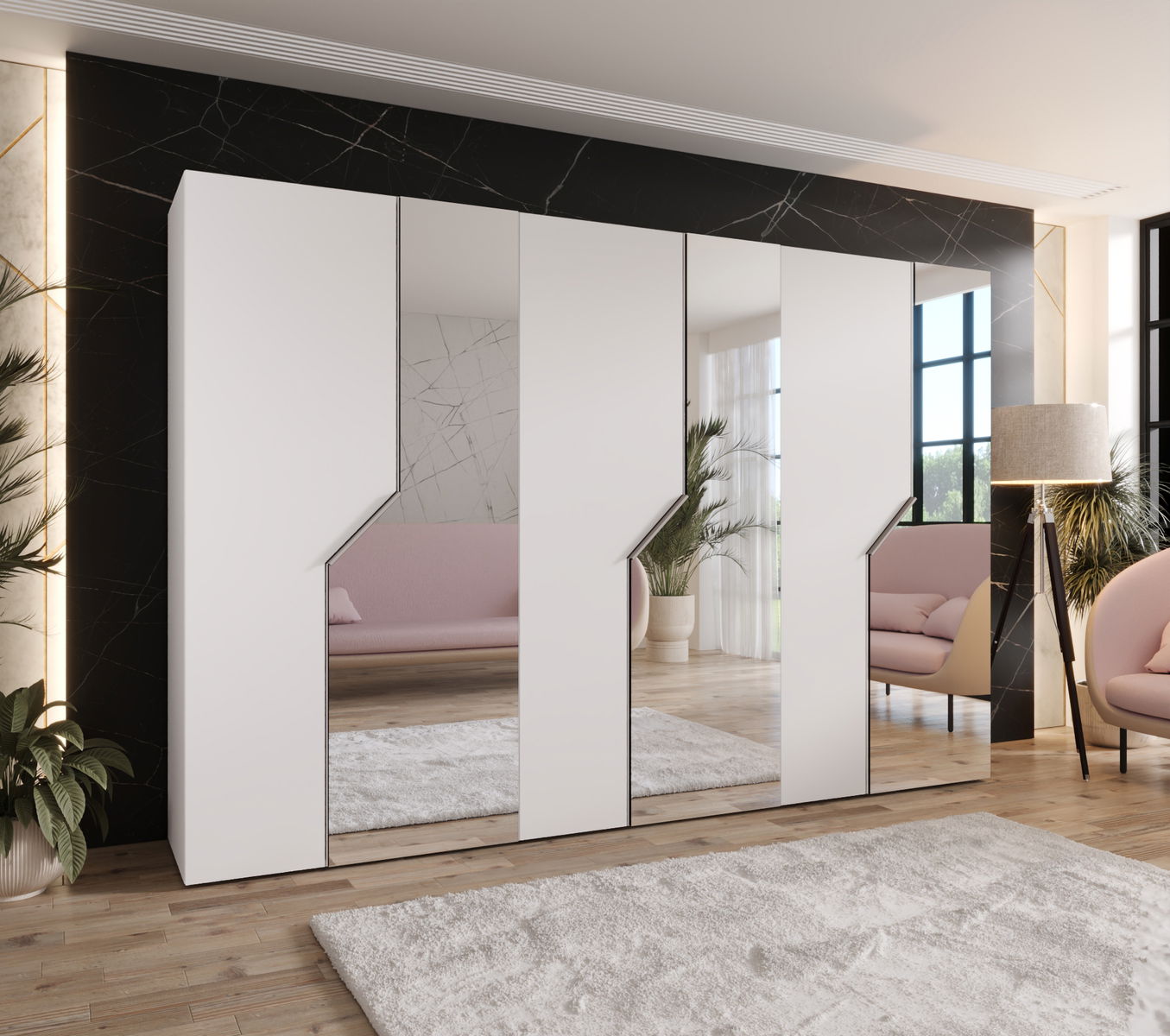 - Šatní skříň Alaris 2 300 (bílá + kašmír) (se zrcadlem)
