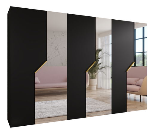 Šatní skříň Alaris 2 300 (černá + zlatá) (se zrcadlem)