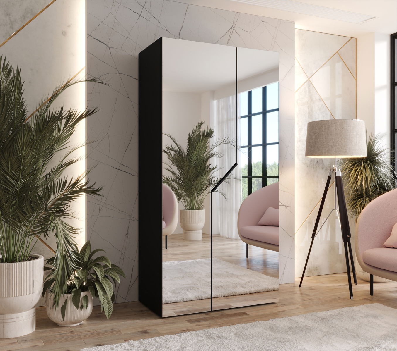 - Šatní skříň Alaris 3 100 (černá) (se zrcadlem)
