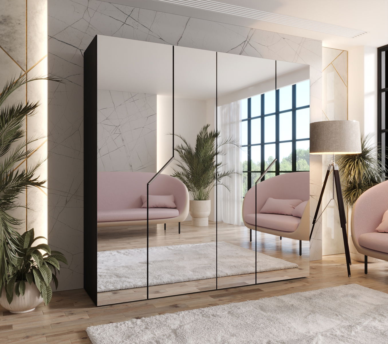- Šatní skříň Alaris 3 200 (černá + kašmír) (se zrcadlem)