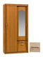 Dvoudílná šatní skříň s posuvnými dveřmi v levé části a otevíracími dveřmi v pravé části. Pravý díl skříně se zrcadlem je vybaven policemi a na spodku najdete 2 zásuvky. Levý díl je vybaven věšákovou tyčí a na spodku se nachází jedna polička. Šedé oválné úchyty. Provedení olše a buk.