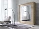 Šatní skříň, která uspokojí i náročnější uživatele. Na posuvných dveřích se nachází zrcadlo, které opticky zvětší prostor. Vnitřní uspořádání je velmi praktické. Nachází se tam věšáková tyč na zavěšení oblečení a výškově nastavitelné police, které si můžete uspořádat podle svých potřeb. Je vyrobená z kvalitní LTD (laminovaná dřevotříska) tloušťky 15 mm. Díky laminátové vrstvě je odolná vůči vodě a mechanickému poškození.