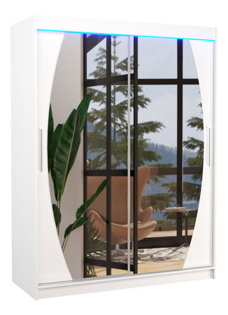 Šatní skříň Arow je praktickým a elegantním doplňkem pro vaši ložnici. Vysoká 200 cm, široká 150 cm a hluboká 58 cm poskytuje dostatek úložného prostoru pro vaše oblečení a doplňky. Skříň je vybavena LED osvětlením, které vám umožní snadno nalézt žádaný kousek i v tmavé místnosti. Kromě toho, tato bílá skříň má také velké zrcadlo, které vám ušetří místo a zároveň vám pomůže při oblékání. Kvalitní materiál zaručuje dlouhou životnost skříně a její moderní design s minimalistickými detaily vám poskytne stylový zážitek. Skříň Arow je ideálním řešením pro ty, kteří hledají kvalitní a praktickou skříň s moderním designem.