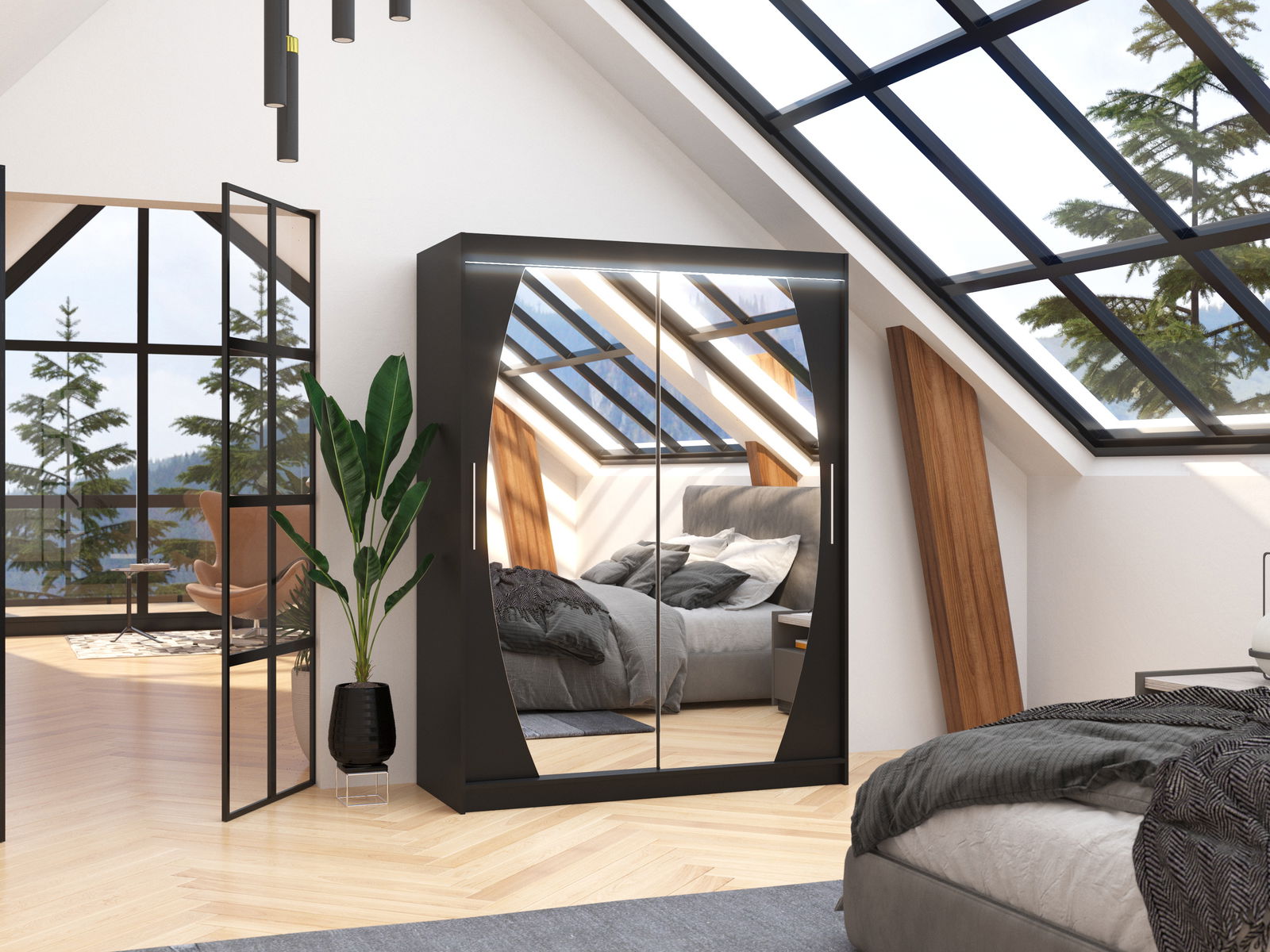 ZobrazitŠatní skříň Arow (černá) s rozmoři výška 200cm, šířka 150cm a hloubka 58cm je ideálním řešením pro zajištění dostatečného úložného prostoru v ložnici nebo šatně. Skříň disponuje praktickými policemi, závěsy na oblečení a zrcadlem, což vám umožní pohodlné uskladnění vašich věcí. Černá barva skříně dodává interiéru elegantní, modernější vzhled. Skříň Arow je vyrobena z kvalitních materiálů, díky čemuž je pevná a odolná. Její moderní design a praktická řešení dělají z ní skvělou volbu pro každého, kdo hledá kvalitní a funkční šatní skříň.