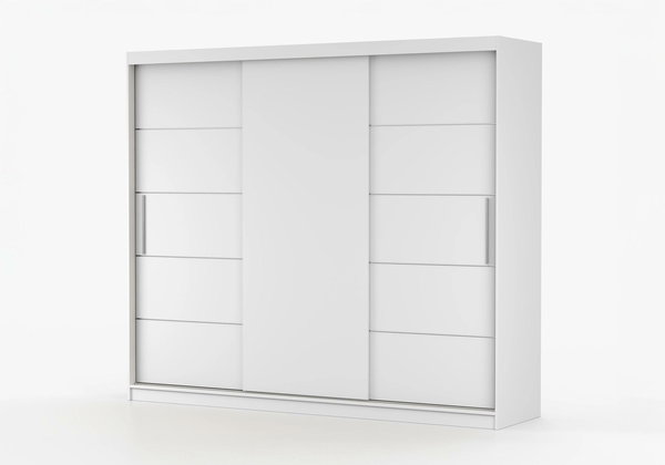 Šatní skříň Arrun (bílá + bílá) o výšce 218 cm a hloubce 61 cm je ideálním řešením pro ty, kteří hledají praktický a elegantní nábytek do své ložnice. Vnější materiál je vyroben z 16 mm silné dřevotřísky, která zajišťuje vysokou pevnost a odolnost. Vnitřní materiál je také vyroben ze stejného materiálu pro větší jednotnost. Hrany jsou osazeny ABS okraji tloušťky 0,5 mm, což zajišťuje ochranu před poškozením. Skříň je vybavena úchyty z PVC, které se snadno uchopují a jsou odolné vůči poškození. Šatní skříň Arrun s bílou barvou vnějšího a vnitřního materiálu je vynikajícím doplňkem pro každou ložnici, která potřebuje praktické a stylové úložné řešení.