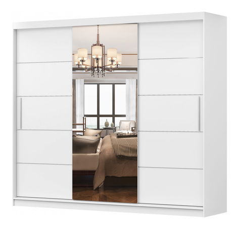 Šatní skříň Arrun (bílá + bílá + zrcadlo)